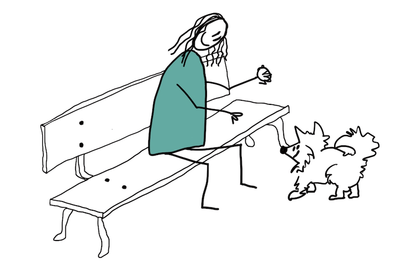 Se acercó despacito al banco, con las orejas gachas y moviendo suavemente el rabo, hasta casi tocar a la mujer.