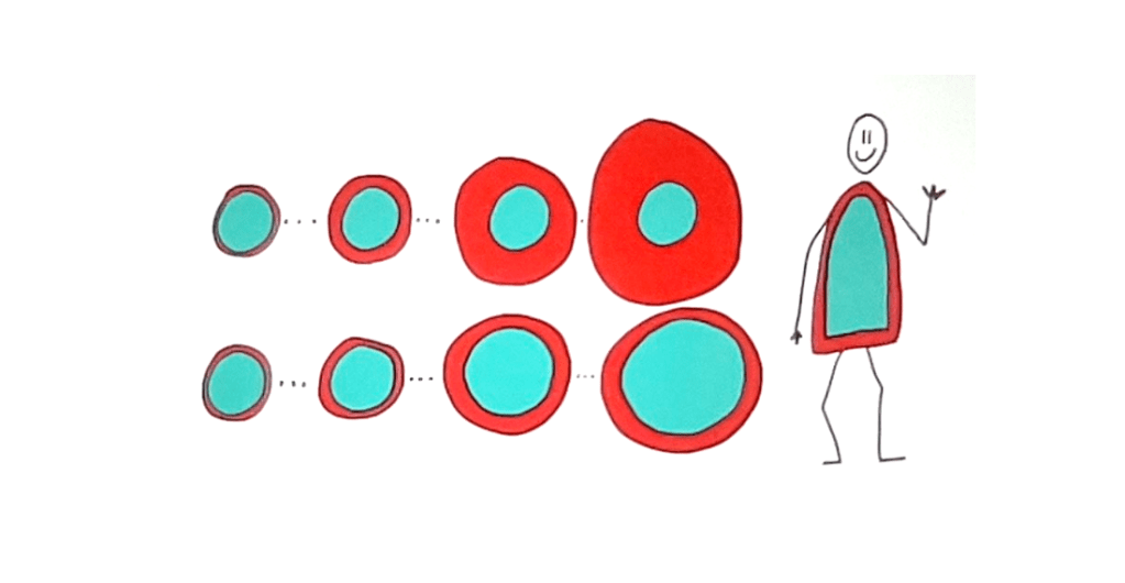 El problema nace cuando hacemos crecer el círculo rojo y no lo acompañamos con el turquesa.